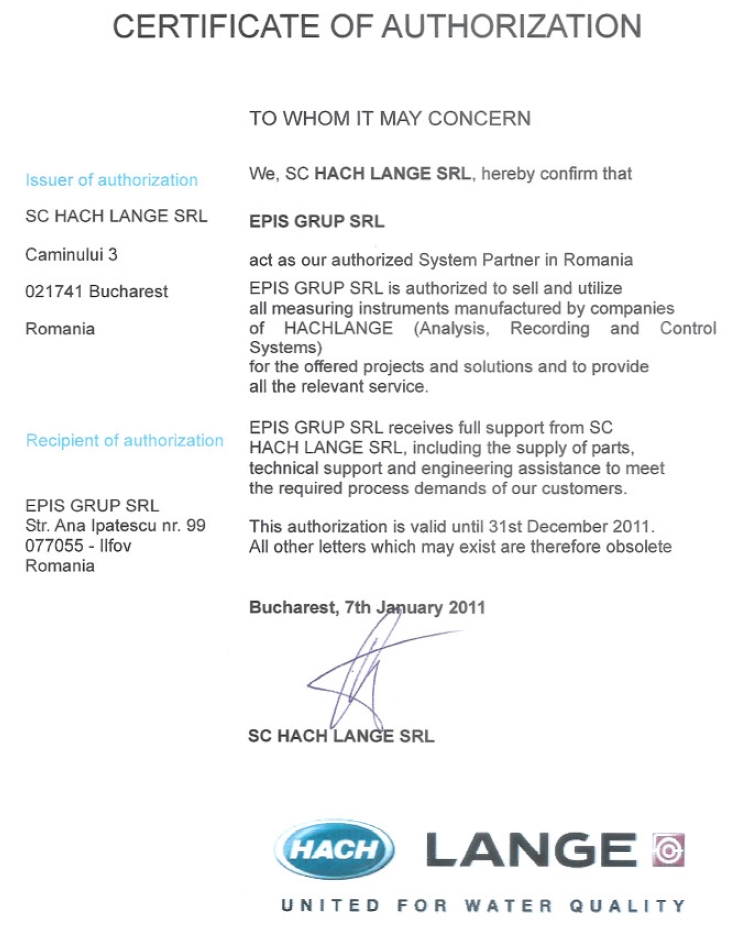 Should you not find the necessary details, please access the HACH LANGE catalogue available in the bottom of the page, or contact us via email ( offoce@episgrup.ro ) or phone ( +4 / 021 . 310.43.11 ) to help you.